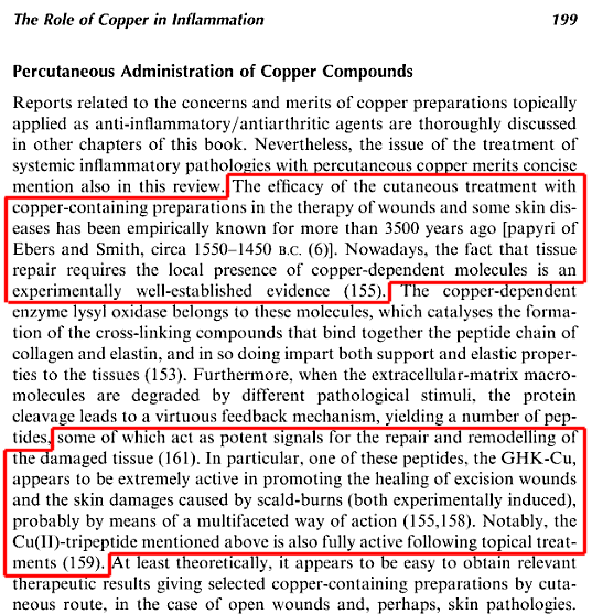 We found the following paragraph in "Copper and the skin" by Jurij J. Hostynek and Howard I. Maibach, published in 2006 and at the time of writing available for a hefty $ 231.85 at Amazon.com: