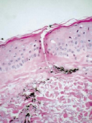 This is how deep skin products such as Copper peptides are absorbed after dermarolling. This picture is from "Minimally Invasive Percutaneous Collagen Induction" by Desmond Fernandes - co-inventor of the Dermaroller - and it shows that creams put on the skin after dermarolling penetrate the papillary dermis. The black areas are Indian ink that has entered through the hole at the top, made by a dermaroller.